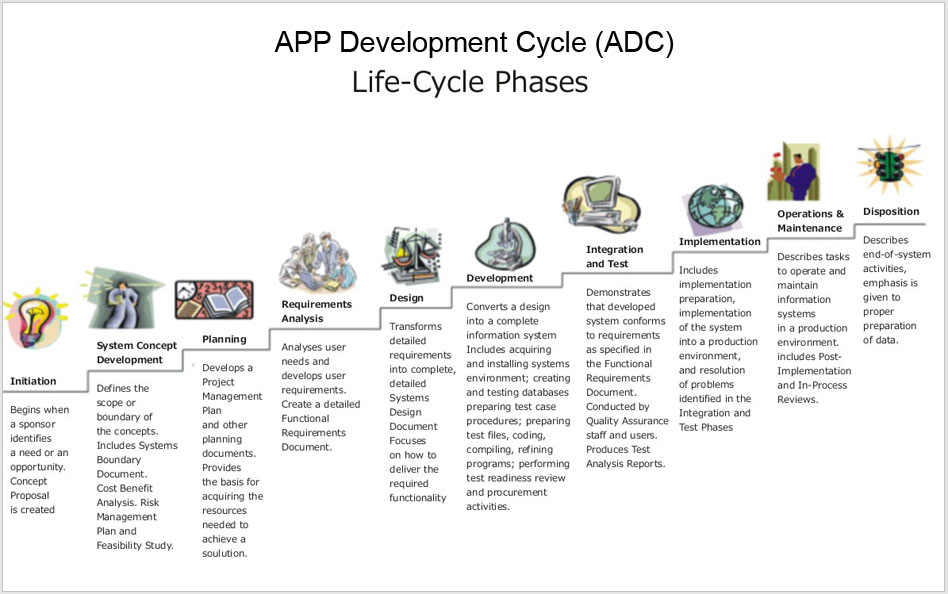 Development cycle includes multiple steps which start from initiation through planning, design integration till disposition.